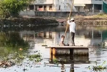 વડોદરા શહેરના દુધિયા તળાવની સફાઈમાં તારાપા પર કોન્ટ્રાક્ટરે બાળકને સાથે રાખતા વિવાદ | Controversy over contractor keeping child with him on boat while cleaning Dudhia Lake in Vadodara