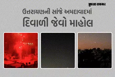 ઉત્તરાયણની સાંજનો આહલાદક નજારો: અમદાવાદીઓએ ધાબા પર કરી આતશબાજી, દિવાળી જેવો માહોલ સર્જાયો | Makar Sankranti 2026 like Diwali atmosphere in Ahmedabad on the evening of Happy Uttarayan