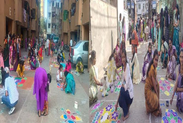 સુરતમાં તેલગુ સમાજની વસ્તીવાળા વિસ્તારમાં મકર સંક્રાંતિના દિવસે ઘર આંગણે રંગોળી થઈ | Rangoli was Make on the day of Makar Sankranti in an area populated by the Telugu community in Surat