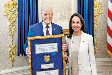વોશિંગ્ટન : વેનેઝુએલાની વિપક્ષની નેતા મારિયા કોરિના મચાડોએ તેને મળેલું નોબેલ પીસ પ્રાઇઝ અમેરિકન પ્રમુખ ડોનાલ્ડ ટ્રમ્પને આપ્યું હતું. ટ્રમ્પે તેને પારસ્પરિક સન્માનની સુંદર અભિવ્યક્તિ ગણાવી હતી. જો કે નોબેલ પીસ પ્રાઇઝ કમિટીએ વિરોધ કરતાં જણાવ્યું હતું કે આ રીતે કોઈ તેમનું ઇનામ બીજાને ન આપી શકે. મચાડો પહેલા ઘણી વખત કહી ચૂકી છે કે તે ટ્રમ્પને તેનું નોબેલ પીસ પ્રાઇઝ આપશે.