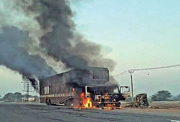– બહુચરાજીથી કાર ભરીને કન્ટેનર ભોપાલ જતું હતું : શોર્ટસર્કિટથી આગ લાગી હોવાનું અનુમાન