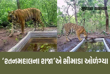 રતનમહાલના રાજાએ સીમાડા ઓળંગ્યા: જોડીદારની શોધમાં છોટાઉદેપુર સુધીનો 120 ચો.કિમી. વિસ્તાર ખૂંદી વળ્યો | Ratanmahal Tiger Expands Territory: 120 Sq Km Covered in Search of Mate