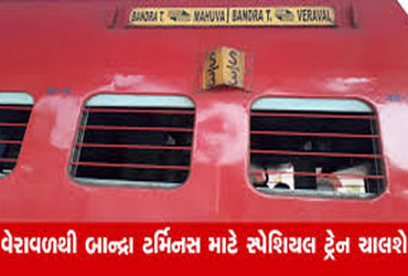 વેરાવળથી બાંદ્રા ટર્મિનસ વચ્ચે સ્પેશિયલ ટ્રેન ચાલશે | Special train will run between Veraval and Bandra Terminus