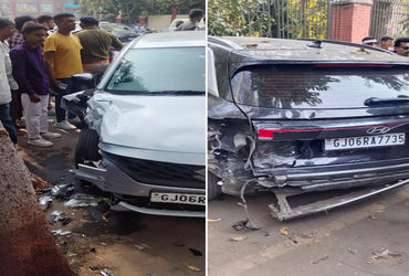 વડોદરામાં કોઠી ત્રણ રસ્તા પાસે કારચાલકની તબિયત લથડતાં ત્રણ વાહનને અડફેટમાં લીધા, બે ઘાયલ | Car driver hits 3 vehicles in vadodara and two injured in accident