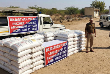 ગણતંત્ર દિવસની સુરક્ષાને ધ્યાનમાં રાખીને રાજસ્થાન પોલીસ હાઈ એલર્ટ પર છે. આ દરમિયાન નાગૌર જિલ્લાના થાવલા પોલીસ સ્ટેશન વિસ્તારમાં પોલીસની ડિસ્ટ્રિક્ટ સ્પેશિયલ ટીમ (DST) અને સ્થાનિક પોલીસે સંયુક્ત ઓપરેશન હાથ ધર્યું હતું. હરસૌર ગામમાં એક ફાર્મ હાઉસ પર દરોડો પાડીને પોલીસે આશરે 10000 કિલોગ્રામ (9550 કિગ્રા) ગેરકાયદે એમોનિયમ નાઈટ્રેટ જપ્ત કર્યું છે. રાજ્યમાં વિસ્ફોટકોની આ અત્યાર સુધીની સૌથી મોટી રિકવરી માનવામાં આવે છે.