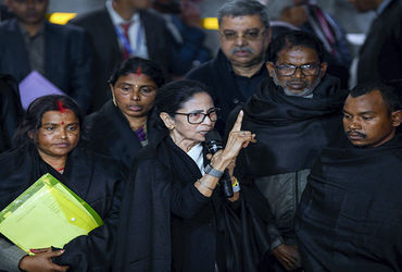 મુખ્યમંત્રીએ કહ્યું હતું કે હું દિલ્હી પોલીસ પર દોષ નાખવા નથી માગતી, મારો સવાલ જે ટોચ પર બેઠા છે તેમને છે. જ્યારે ટીએમસીના નેતા સાકેત ગોખલેએ દાવો કર્યો હતો કે દિલ્હી પોલીસે બંગાળના આ પીડિતોને એવી ધમકી આપી છે કે જો તેઓ જ્યાં રોકાયા છે ત્યાંથી બહાર નિકળશે તો તેમની અટકાયત કરી લેવામાં આવશે. વિવાદ વચ્ચે બાદમાં કાળી ચાદર પહેરીને મમતા બેનરજી મુખ્ય ચૂંટણી કમિશનરને મળ્યા હતા. આ મુલાકાત બાદ તેમણે દાવો કર્યો હતો કે એસઆઇઆર પ્રક્રિયા દરમિયાન બંગાળમાં ૧૪૦થી ૧૫૦ લોકો માર્યા ગયા છે. હું બહુ જ દુ:ખી છું, દિલ્હીના રાજકારણમાં લાંબા સમયથી સક્રિય છું, ચાર વખત મુખ્યમંત્રી અને સાત વખત સાંસદ રહી ચુકી છું, મે આજ દિન સુધી આટલા અહંકારી અને જુઠા ચૂંટણી કમિશનર નથી જોયા, ચૂંટણી પંચે ૯૮ લાખ લોકોના નામ મતદાર યાદીમાંથી હટાવી નાખ્યા. તેમને પોતાનો બચાવ કરવાની તક પણ આપવામાં ના આવી.