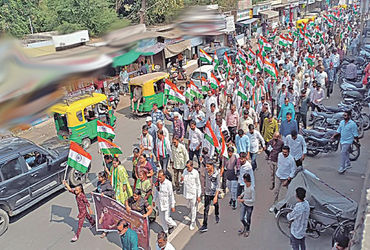 સુધી પદયાત્રા અને રેલી યોજી જિલ્લા ક્લેક્ટર તેમજ એસ.પી. કચેરી ખાતે આવેદનપત્ર