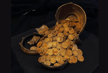 આ શોધ ત્યારે થઈ જ્યારે વિસ્તારમાં નવા કન્સ્ટ્રક્શન પહેલા રેસ્ક્યૂ એક્સકેવેશન કરવામાં આવી રહ્યુ હતું. ખોદકામ દરમિયાન પુરાતત્વીય ટીમે એક જૂના પથ્થરનો પાયો હટાવ્યો. પાયાની નીચે તેમને તૂટેલું માટીનું વાસણ મળી જેને કંદ્યુષ્કા કહેવામાં આવે છે. આ નાનું વાસણ હોય છે જેમાં હેન્ડલ અને સાંકડી ગરદન હોય છે. જ્યારે ટીમે વાસણના ટુકડાઓની તપાસ કરી, ત્યારે તેમને અંદર સોનાના સિક્કાઓનો મોટો સંગ્રહ મળ્યો. કુલ 409 સોનાના સિક્કા મળી આવ્યા.