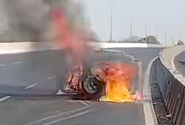 સુરતના આમરોલી ખાતે રહેતા નિલેશ ભાઇ વાઘેલા તેમના સબંધી સાથે રિક્ષામાં ખંભાત દર્શન માટે આવ્યા હતા.બપોરે પરત ફરી રહ્યા હતા ત્યારે નંદેસરી બ્રિજ પર એકાએક રિક્ષામાં આગ લાગી હતી અને રિક્ષાપલ્ટી ગઇ હતી.