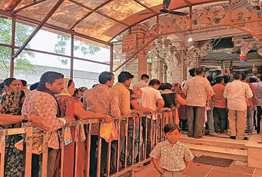બગોદરા : ધોળકાના ગણપતપુરા (કોઠ) ખાતે સંકષ્ટ ચતુર્થી અને રવિવારના ત્રિવેણી સંગમ નિમિત્તે ભક્તોનું ઘોડાપૂર ઉમટયું હતું. મંદિર ટ્રસ્ટ દ્વારા ગરમીને ધ્યાનમાં રાખી છાંયડા, ઠંડા પાણી અને ખાસ ફરાળી પ્રસાદની સુંદર વ્યવસ્થા કરાઈ હતી.