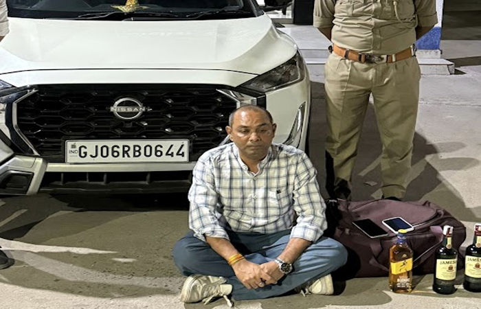 દિનેશ મીલ ત્રણ રસ્તા પાસે કારમાંથી દારૂની બોટલો સાથે ચાલક ઝડપાયો