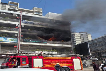 બીજા માળે પરિશ્રમ અર્થ મુવર્સ નામની જેસીબી અને ક્રેઈન ભાડે આપતી ઓફીસ છે. જયાં બપોરે આગ ભભૂકી ઉઠતાં ફાયર બ્રિગેડનો સ્ટાફ ચારેક ફાયર ફાઈટરો સાથે સ્થળ પર પહોંચી ગયો હતો. ચાલીસેક મિનિટ પાણીનો મારો ચલાવાયા બાદ આગ કાબુમાં આવી હતી. ત્રીજા અને ચોથા માળે આઠેક જણા ફસાઈ ગયાની જાણ થતાં ફાયર બ્રિગેડના સ્ટાફે તમામને સલામત રીતે બહાર કાઢયા હતા.