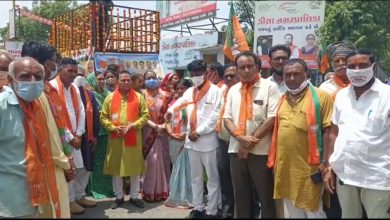 ગઢડા ખાતે આવી પહોંચેલી જન આશીર્વાદ યાત્રામાં કેન્દ્રીય આરોગ્ય મંત્રીશ્રી મનસુખભાઈ માંડવીયાની આગેવાનીમાં આ યાત્રા ગઢડા શહેરના રાજમાર્ગો પર ફરી