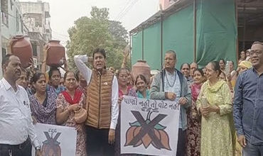 વડોદરામાં ગંદા પાણીના મુદ્દે રહીશોનો અનોખો વિરોધ : ભાજપ નેતા અને કમળના ચિન્હને જલાભિષેક, હોબાળો મચાવ્યો | Unique protest by residents over dirty water issue in Vadodara