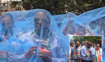 હાથમાં દૂષિત પાણી અને શરીર પર મચ્છરદાની: નવસારીમાં કોંગ્રેસ ઉમેદવારે અનોખી રીતે ફોર્મ ભરી નોંધાવ્યો વિરોધ | Congress Candidate Files Nomination Wearing Mosquito Net to Protest Civic Issues In Navasari